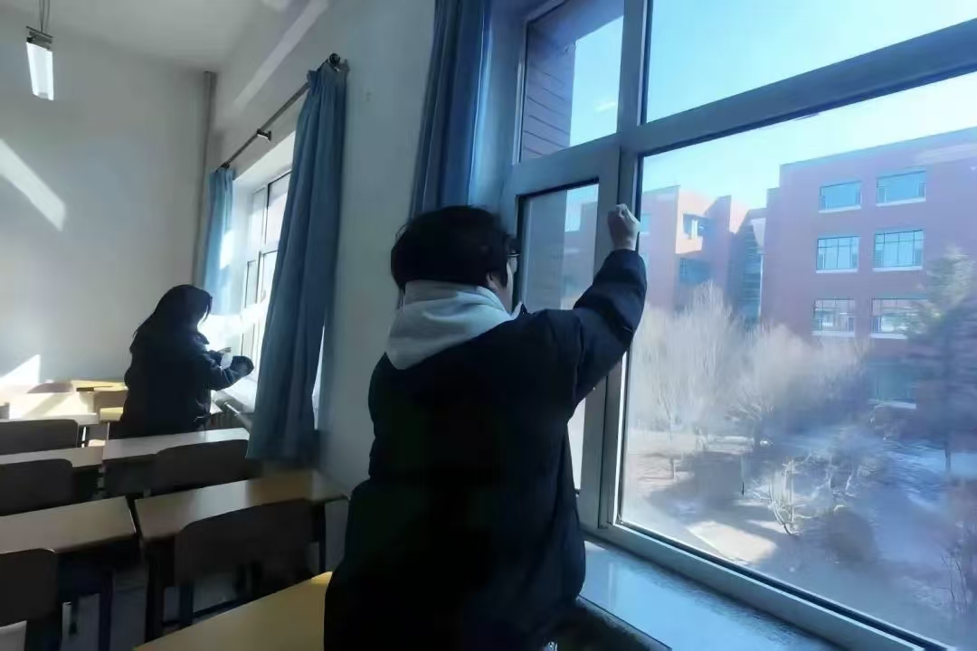 为弘扬雷锋精神,我院学子积极响应“向雷锋同志学习”号召,将崇高信念融入点滴行动,参加清扫教室的志愿服务活动。在活动中,志愿者们分组深入各间教室,各司其职、协同配合。大家手持清洁工具,细致擦拭每一扇玻璃、每一处窗台,力求光洁如新;认真清理黑板上的每一道粉笔痕迹,还原讲台的整洁面貌;并将桌椅逐一归位、排列整齐,使整个教室呈现出窗明几净、井然有序的面貌。