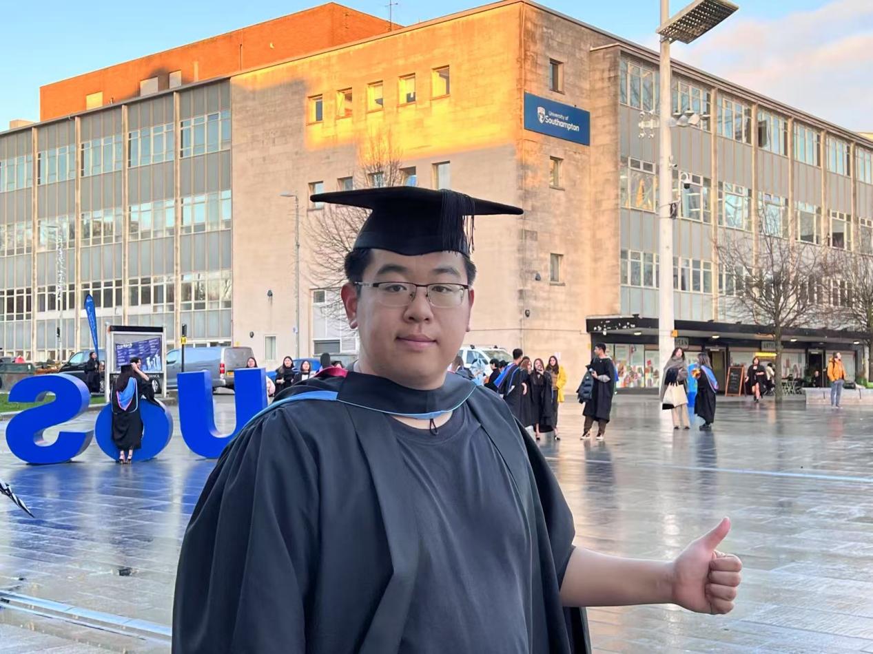 王耀珩,我院2018级英语专业学生、院学生会学习部部长,2022年9月,正式进入英国南安普顿大学(University of Southampton),在人文艺术学院(Faculty of Arts and Humanities)开始了为期一年的全日制英语语言教学/对外英语教学研究(English Language Teaching / TESOL Studies)文学硕士(MA)学习。2023年9月完成学业,并于同年11月被授予硕士学位。毕业后留校。