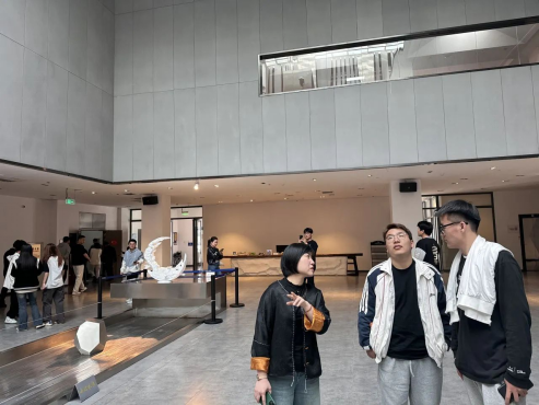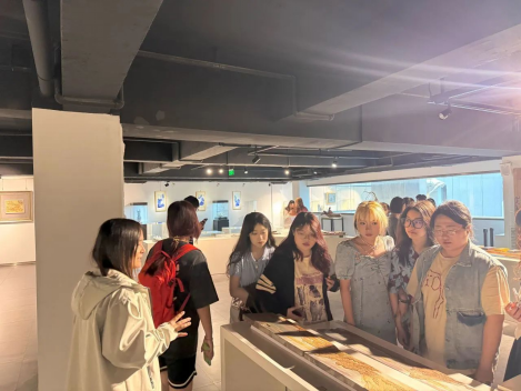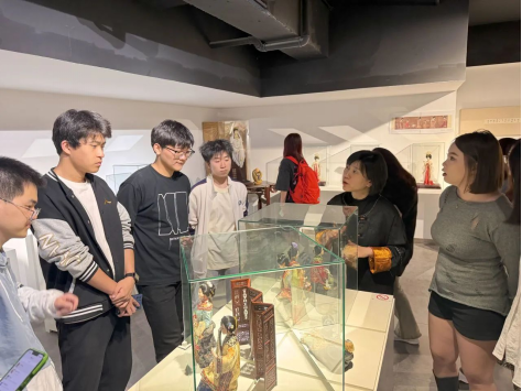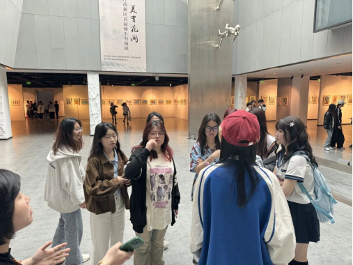 在互动体验环节中,同学们亲身体会到了传统艺术的魅力。体验结束后,崔佳老师、付诗雯老师及场馆负责人带领同学们在一楼大厅进行了自由交流,同学们围绕本次参观体验进行交流分享,大家都收获满满。