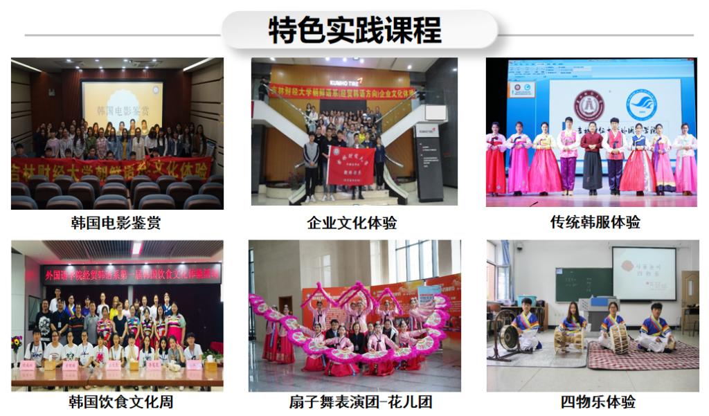 为培养学生的实践能力与创新创业能力,本专业开设了一系列注重技能的实践课程,如韩国礼仪与文化体验、韩语听说实训、韩语会话实训、韩语写作实训等,实践课程占比30%以上。着力激发学生的思考与创新、提高学生解决问题的能力,且注重人文渗透,启发学生体悟实践能力对自身素质提高与社会发展的意义。