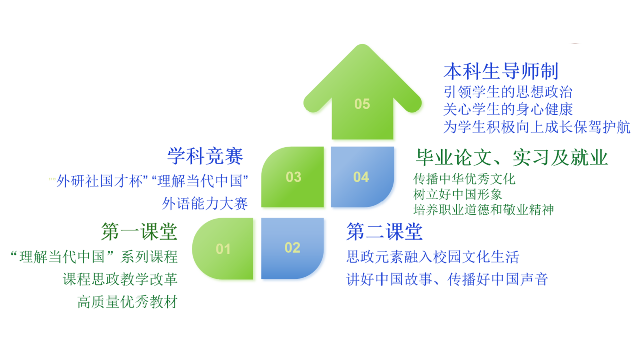本专业在教育教学中注重加强对学生的世界观、人生观和价值观的教育,传承和创新中华优秀传统文化,积极引导学生树立正确的国家观、民族观、历史观、文化观,培养学生讲好中国故事,树立好中国形象的能力,并由学生导师全方面把控和引领学生的思想品德,为学生的成长保驾护航,形成“全员、全过程、全方位”三全育人格局。