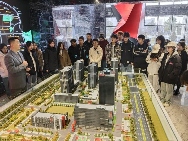 活动当天,师生们在园区总经理助理、运营总监李大鹏的带领下,依次前往“品牌广场”“青年力量商学院”“设计广场”等区域。在“品牌广场”,同学们见证了从传统的平面广告到现代的数字广告、从静态的广告牌到动态的互动体验的各种广告形式,深刻体会到广告行业在数字化、智能化方面的快速发展。在“设计广场”,同学们参观了广告设计的各个环节,从创意构思到制作加工,再到发布展示,全面了解广告作品从诞生到呈现的全过程。