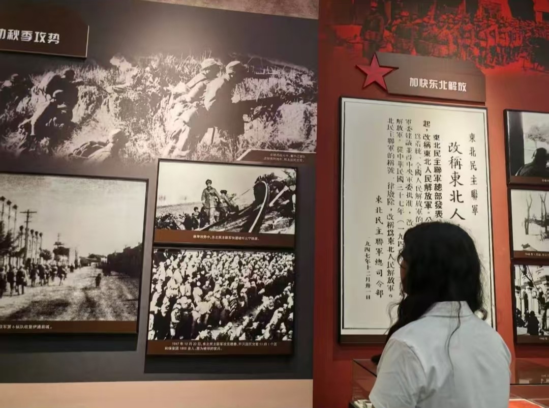 时间回溯到1946年3月至1948年3月,东北解放战争中一段关键的战事——四战四平,在这片土地上激烈展开。硝烟弥漫中,中国共产党领导的东北民主联军以伤亡4万余人的巨大代价,歼灭国民党军6万8000余人,成功掌握战略要地四平。这一场场战斗,是信念的交锋,是热血的挥洒,更是历史转折的关键推力,让四平成为东北解放战争中无法被遗忘的坐标。纪念馆的展厅,是一本本“立体的青春启示录”:战史厅中的枪炮、地图、作战文书……这些展品背后,是无数次战略抉择与生死冲锋。独轮车、旧衣布衫……百姓们倾家荡产支援前线,让我们看见“人民”二字的重量。英烈厅中的名字与故事,是最生动的“价值观课堂”。半景画馆中多媒体技术还原的战火硝烟,把我们带回那个年代的炮弹轰鸣、火光冲天中,让我们感受到和平的来之不易。