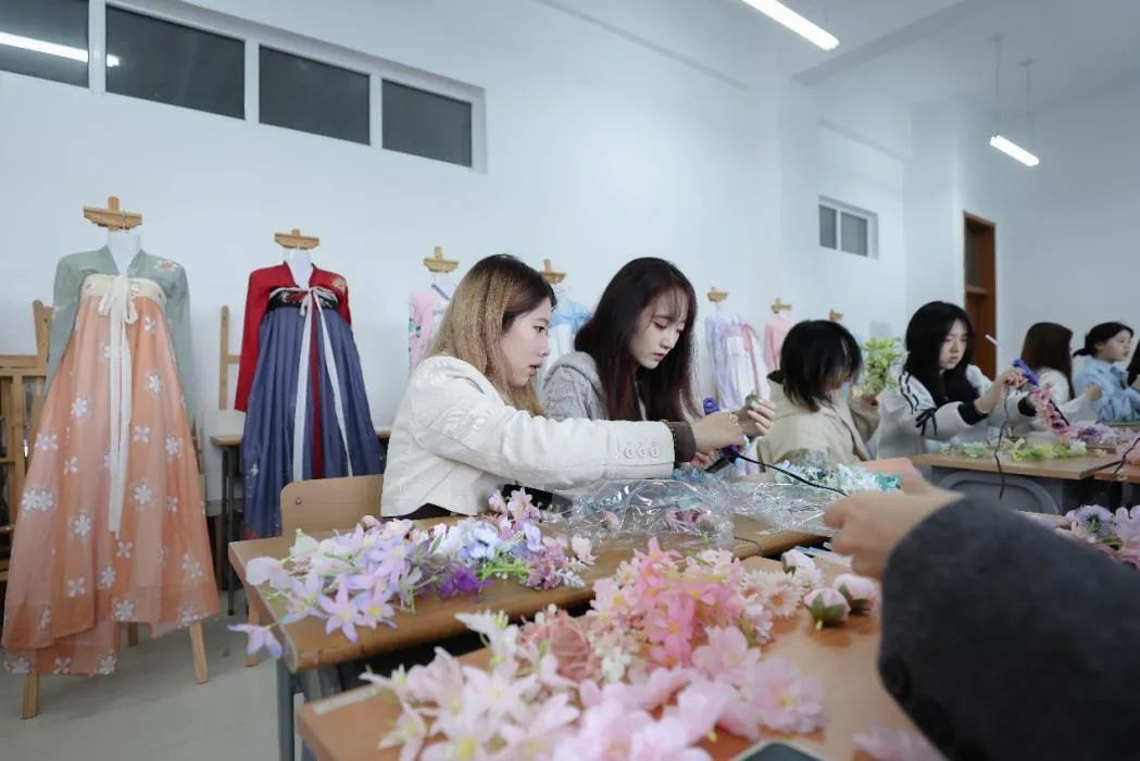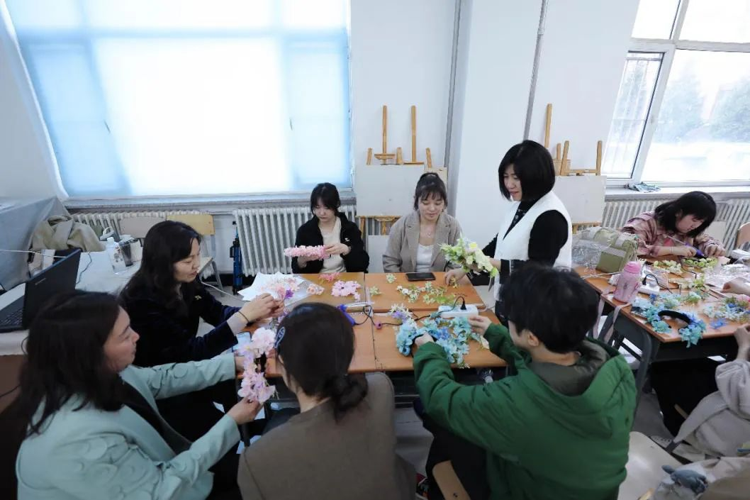 以美化人,以美润心。为进一步加强学校美育工作,推动我校学生对传统文化的传承与体验,工商管理学院联合我院美育教研室及德仁社区于4月16日开展以“非遗·簪花”为主题的美育活动。为保证活动效果,德仁社区辅导员刘美谷老师为同学们准备了材料包和传统服饰,我院美育教研室崔佳老师主持并指导此次活动,工商管理学院党委书记梁晓秋、副书记遇言也来到现场,与德仁社区的学生一同体验。