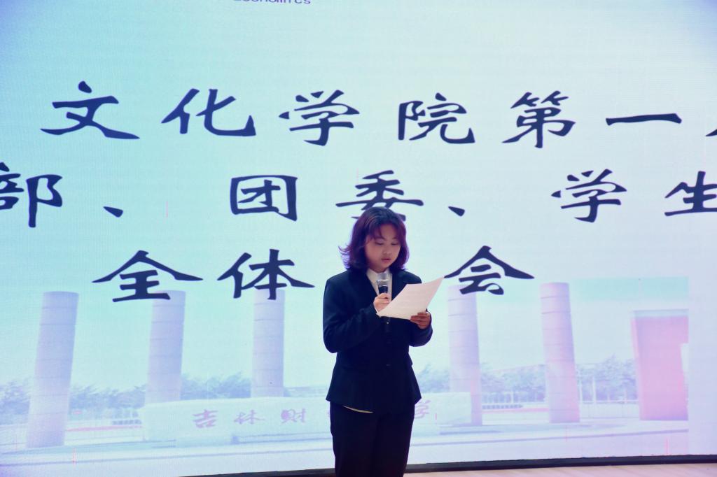 会议伊始,执行主席王俊熹上台总结开学以来的学生工作与各学生社团纳新情况,通过详实的内容展现出学生骨干队伍的辛勤付出与工作实效,为本学期各项工作的有序推进筑牢基础。党支部新生代表邓丹丹、学生会新生代表宽卓措先后登台分享入学感受与未来规划,表达未来将以高标准严格要求自己,在工作中积累经验、提升能力,与团队成员互帮互助、共同进步,努力成为合格的学生干部。