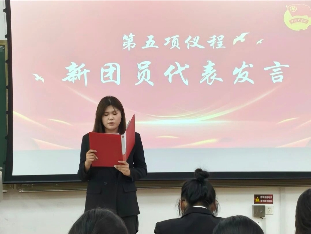 赵思涵同学表示,今天成为共青团员,既是对自己成长的肯定,也是一个新的起点。共青团引领着青年为中国梦奋斗,成为团员后,我们要铭记五四精神,在学习和生活中严格要求自己,践行社会主义核心价值观,积极参与团组织活动。最后呼吁同学们携手奋进,用青春力量为民族复兴贡献力量。