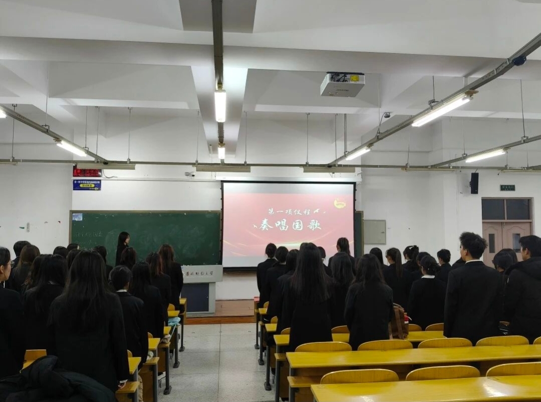 全体人员起立,高唱国歌,激昂的旋律中凝聚着青年对祖国的赤诚与热爱,入团仪式在庄重崇敬的氛围中拉开帷幕。