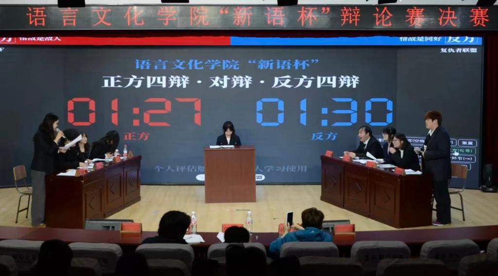 本次辩论赛聚焦“语言的边界是否是人类的边界”这一核心议题。正方严谨论证语言框定认知边界,反方则立足思维超越性反驳语言禁锢。双方结合实例与理论展开交锋,为观众呈现了一场高质量的思想交流盛会。正赛后,大二辩手为大家带来了一场辩论赛表演赛。