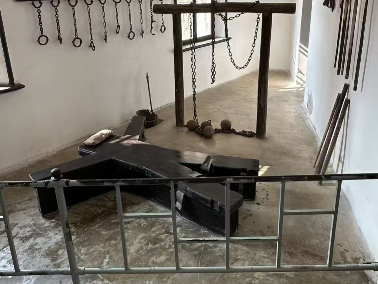 刑讯室里,老虎凳、吊杠、竹签、辣椒水等刑具整齐陈列,每一件都沾满了鲜血与泪水。殖民者为逼供,用尽惨无人道的酷刑,将反抗者捆绑在刑具上,鞭打、烫伤、灌毒水,即便伤口结痂,也要残忍挑开,让痛苦无限延续。暗牢更是人间绝境,密不透风,漆黑一片,被关入其中的人,在无尽的黑暗与孤独中逐渐崩溃,却依旧有无数爱国志士宁死不屈。绞刑室里,冰冷的绞刑架、血迹斑斑的落尸井,见证了无数生命的消逝,那些为民族独立、人民解放而抗争的英雄,在这里壮烈牺牲,用生命诠释了信仰的力量。